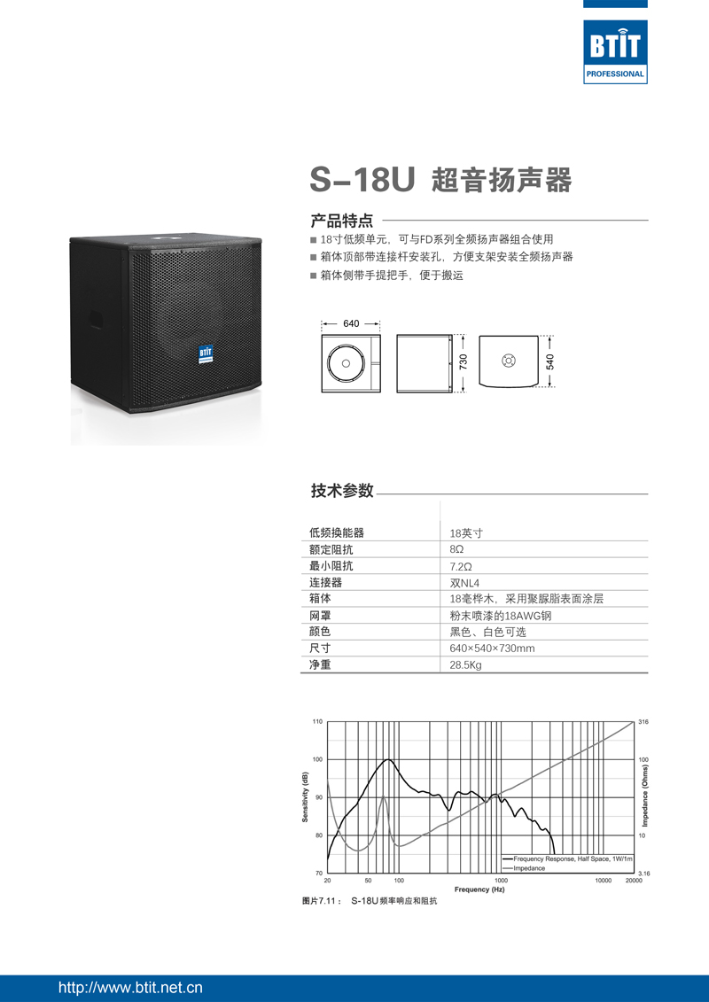 18寸低频单元,可与FD系列全频扬声器组合使用
